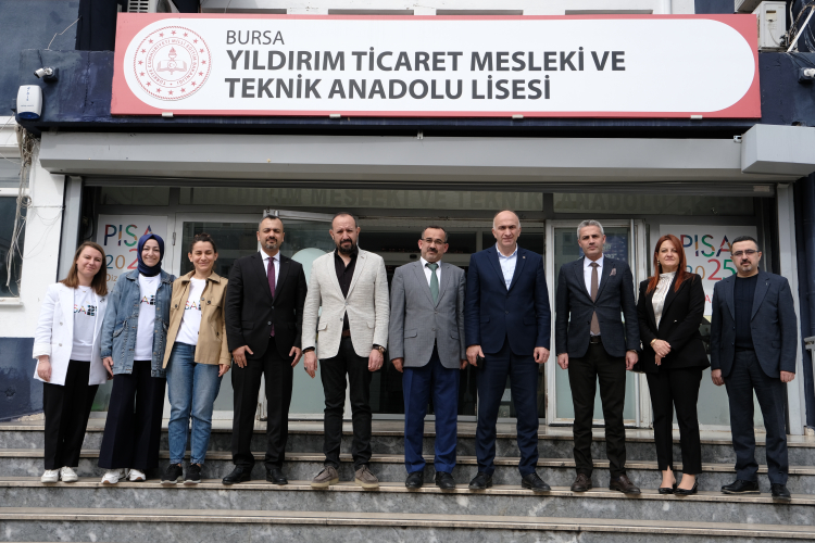 PİSA 2025 öncesi yarışamaya katılacak okulları ziyaret eden Milli Eğitim Bakanlığı Programlar ve Öğretim Materyalleri Daire Başkanı Bedri Ekşi, İl Milli Eğitim Müdür Yardımcısı Abdulkadir Çınar, Yıldırım İlçe Milli Eğitim Şube Müdürü Emel Dede ve ODM Müdürü Volkan Çınaroğlu Yıldırım Ticaret Mesleki ve Teknik Anadolu Lisesi ve Faik Çelik Kız Mesleki ve Teknik Anadolu Lisesi’ni gezerek çalışmalar hakkında bilgi aldı.
