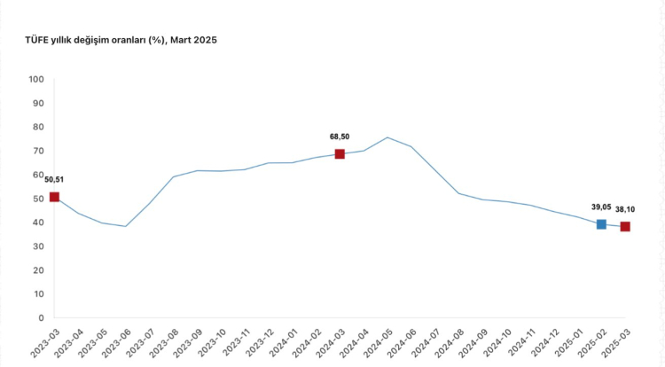 Yılmaz, geçen yıl Haziran ayında başlayan dezenflasyon sürecinin Mart 2025’te de devam ettiğini ve tüketici enflasyonunun yıllık bazda yüzde 38,1’e gerileyerek 10 ayda 37,4 puanlık bir düşüş gösterdiğini belirtti.
