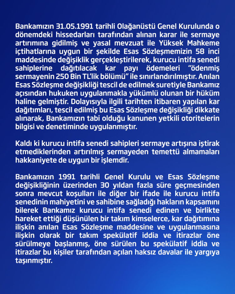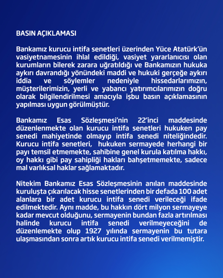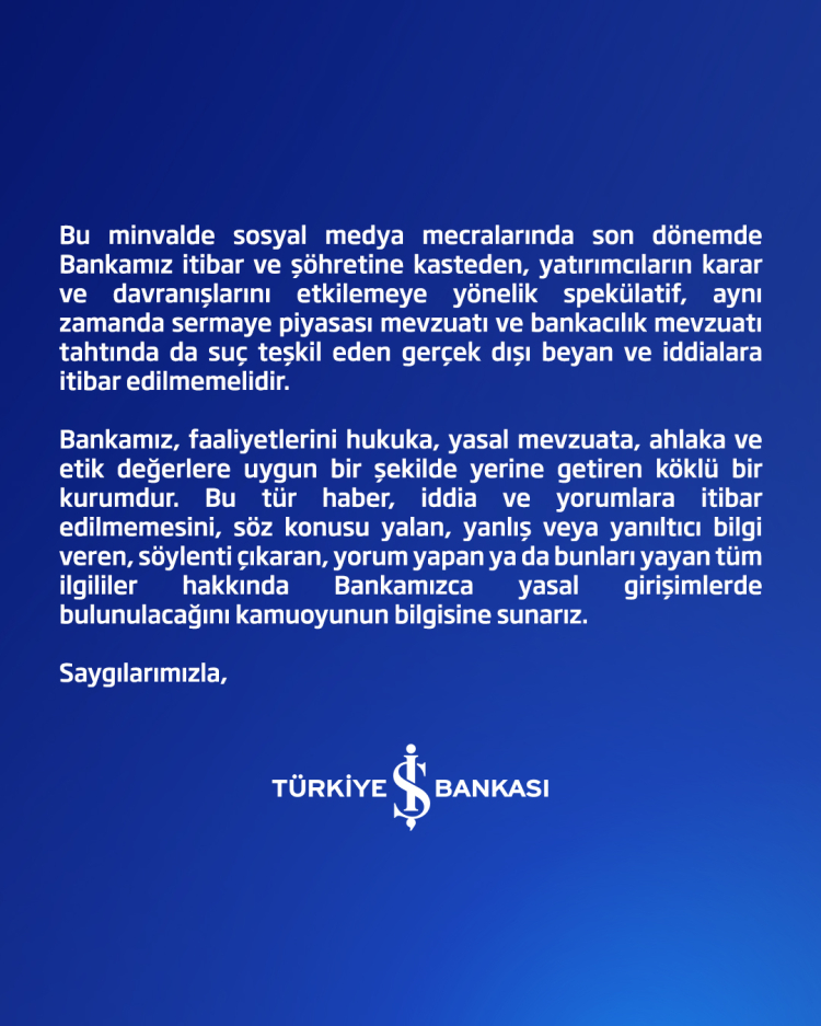 İşbankası sosyal meyda hesabından yapılan açıklama şöyle;