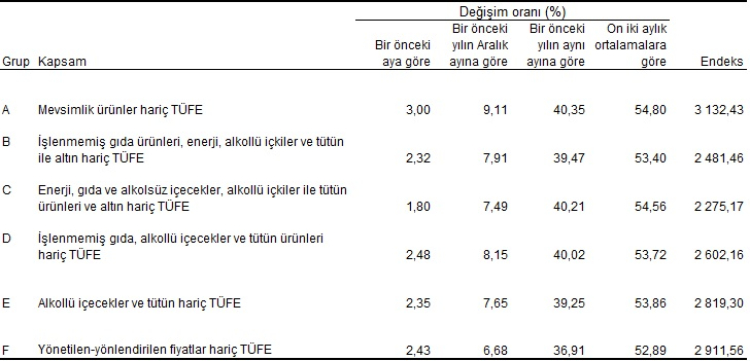 Bu arada özel kapsamlı TÜFE göstergesi (B) yıllık yüzde 39,47, aylık yüzde 2,32 oldu