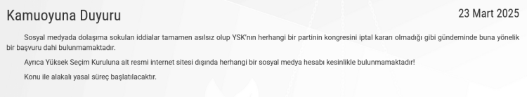 CHP’nin olağanüstü kurultay kararının Yüksek Seçim Kurulu’nca iptal edildiğine dair sosyal medyada çıkan iddialara açıklama geldi.
