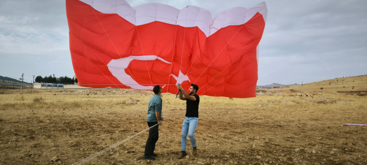Gökyüzünde süzülen Türk bayrağı uçurtmasını gören yerli ve yabancı turistler 9 metrekarelik uçurtmaya hayran kaldı. Mardinli Zahit Mungan (32), çocukken ip bağladığı naylon poşeti uçurarak başlayan ve 27 yıldır sürdürdüğü uçurtma tutkusuyla son 19 yılda yurt dışında 36 ülkeyi gezerek Türkiye adına katıldığı 40 festivalde birçok madalya kazandı.