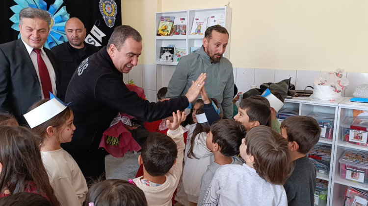 Mimar Sinan İlkokulu Müdürü Atalay Çetin’in de katıldığı etkinlikte, öğrenci ve öğretmenler polisleri çiçeklerle karşıladı.
