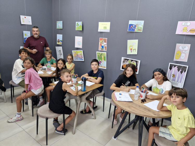 22-24 Ağustos tarihleri arasında Kırlangıç Yaşam Merkezi’nde minik sanatçılarla buluşan Murat Asın, üç gün boyunca karikatür çizmenin temel tekniklerini öğretirken çocukların yaratıcılıklarını ortaya çıkarmalarına da rehberlik etti.